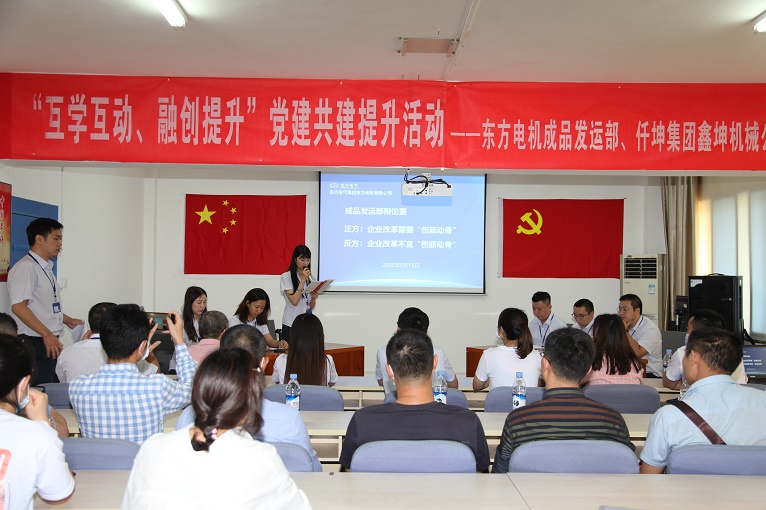 在東電成品發(fā)運部黨支部黨建陣地,開展了以“企業(yè)改革是否需要傷經(jīng)動骨”為主題的辯論賽,正反雙方開展了激烈辯論,現(xiàn)場氣氛熱烈火藥味十足。在吳云華書記宣講了黨課,組織委員交流工作圖表后,雙方黨支部委員簽訂了互學互動承諾書。東電成品發(fā)運部黨支部書記吳云華表示,要加強共建支部之間的交流學習,共同促進共同提高,進一步增強共建學習效果,不斷夯實雙方黨支部黨建基礎,提升黨建科學化水平,體現(xiàn)共建合力。