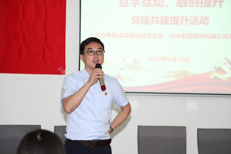 9月15日下午,仟坤集團鑫坤機械黨支部與東電成品發(fā)運部黨支部在東方電機成品發(fā)運部黨員活動中心開展了黨建共建提升活動。仟坤集團黨委書記、副總裁周述軍帶領集團黨委班子及各黨支部書記、鑫坤機械黨支部全體黨員參加。