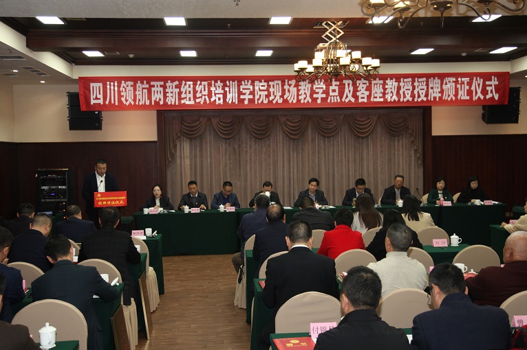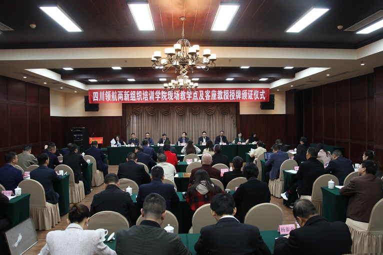 11:00分,在麓棠溫泉會議中心,四川領(lǐng)航兩新組織培訓(xùn)學(xué)院現(xiàn)場教學(xué)點及客座教授授牌頒證儀式正式開始,在綿竹市委常委、組織部部長、市委兩新工委書記李偉同志致辭之后,由德陽市委“兩新”工委專職副書記張興鴻、四川領(lǐng)航兩新組織培訓(xùn)學(xué)院常務(wù)副院長許應(yīng)船為德陽市23個現(xiàn)場教學(xué)點授牌并頒發(fā)“特聘教授”、“兩新智庫”研究員聘書。張書記要求被授予現(xiàn)場教學(xué)點的兩新組織要珍惜榮譽、搶抓機遇、乘勢而上,要充分發(fā)揮政治引領(lǐng)、思想引領(lǐng)、實踐引領(lǐng)作用,為推動經(jīng)濟社會高質(zhì)量發(fā)展貢獻兩新力量。