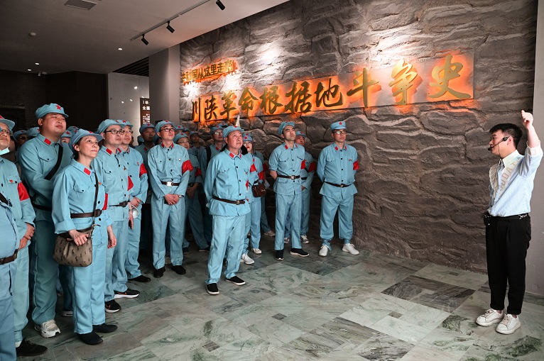 5月8日上午,集團(tuán)領(lǐng)導(dǎo)、全體黨員、中層以上干部身著紅軍服,來(lái)到位于巴州區(qū)的川陜革命根據(jù)地博物館,“12萬(wàn)巴山兒女參加紅軍,4.8萬(wàn)人英勇?tīng)奚?.....”大家跟隨講解員仔細(xì)聆聽(tīng)中國(guó)工農(nóng)紅軍第四方面軍將士的豐功偉績(jī),感受他們堅(jiān)定革命信仰、勇往直前、不畏犧牲的革命精神。“我志愿加入中國(guó)共產(chǎn)黨,擁護(hù)黨的綱領(lǐng)......”在川陜革命根據(jù)地博物館文化廣場(chǎng),全體黨員在集團(tuán)黨委書(shū)記周述軍的帶領(lǐng)下整齊列隊(duì),高舉右拳、莊嚴(yán)重溫入黨誓詞,更加堅(jiān)定“聽(tīng)黨話、跟黨走”的信念。