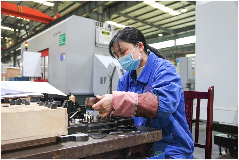 鑫坤機械的葉片車間里,伴著機器轟鳴,數(shù)控工段銑工楊代蓉正在進行檢料,她在平時工作中一絲不茍,熱愛學習的她不斷在崗位上建功立業(yè)。