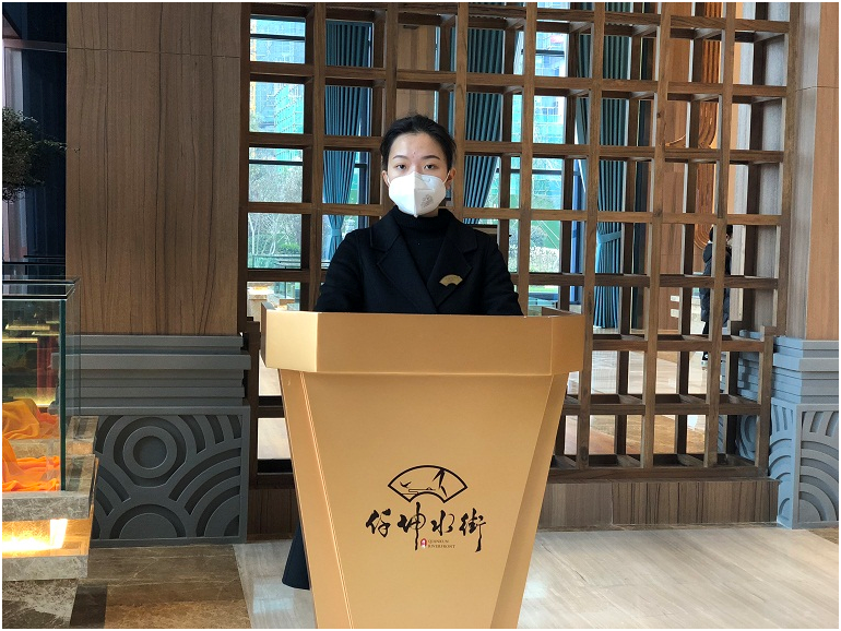 仟坤房產(chǎn)的置業(yè)顧問黃靚,正在仟坤水街售樓大廳里準備資料。迎接您的到來。