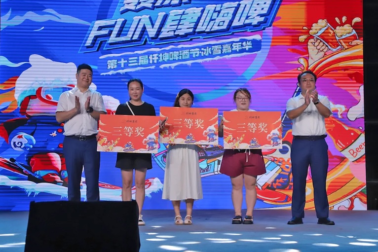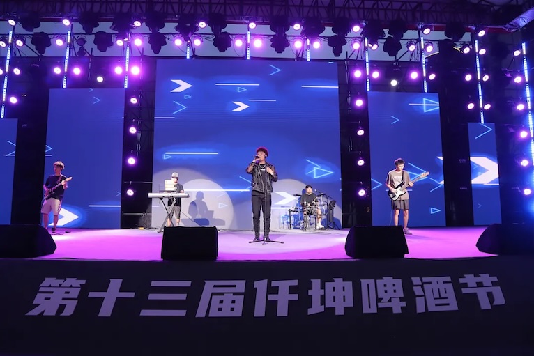 8月9日19:30,主持人登場進(jìn)行了簡短的儀式后,通過視頻連線貴州安順啤酒節(jié)分會場,共同見證仟坤啤酒節(jié)開幕的盛況!首先是由綿竹市副市長陳軍代表綿竹市政府,向來自四面八方的來賓們表示最熱烈的歡迎。陳軍副市長表示,仟坤集團(tuán)深耕綿竹24 年,推動了綿竹住房建設(shè)和物業(yè)管理水平的不斷提升,集團(tuán)還為學(xué)子頒發(fā)獎學(xué)金,獲政府高度評價。啤酒節(jié)已是13 屆,是夏日盛會,并誠邀綿竹、安順啤酒節(jié)會場的所有來賓開懷暢飲,宣布第十三屆仟坤啤酒節(jié)正式啟幕!