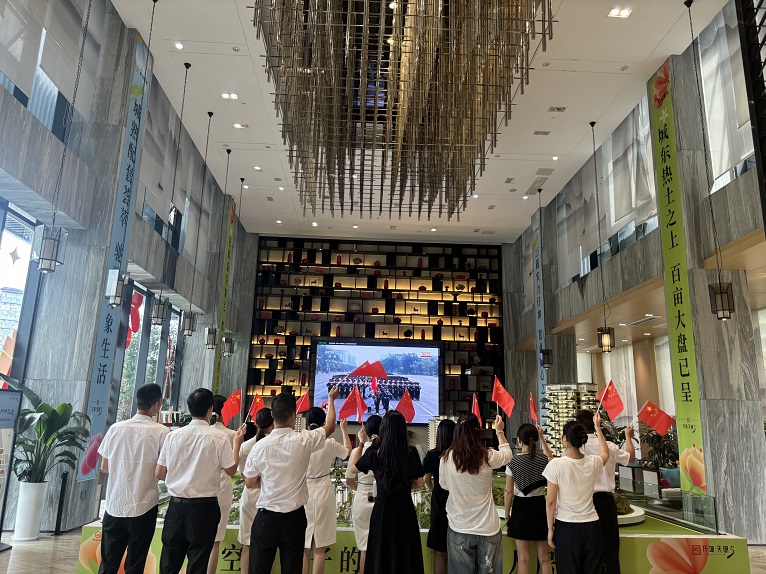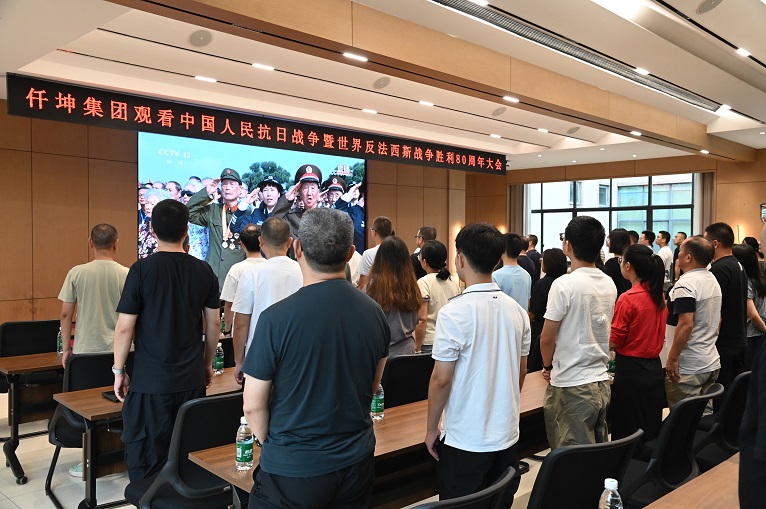 仟坤集團(tuán)黨委積極響應(yīng)號召,迅速組織開展觀看活動。集團(tuán)總裁謝澤波帶領(lǐng)集團(tuán)領(lǐng)導(dǎo)層及總部員工集中在集團(tuán)一樓會議室收看直播。集團(tuán)各分(子)公司、項(xiàng)目部,通過集中觀看、手機(jī)直播等多種形式同步參與。讓全體仟坤職工在共同回望民族抗戰(zhàn)歷史的過程中,見證國之盛典的歷史時刻。
